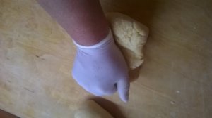 Majd erős nyomó mozdulatokkal, összegyúrjuk. Jó kemény tésztát fogunk kapni. Amit palackba csomagolva félreteszünk 20-30 percig, pihenni.