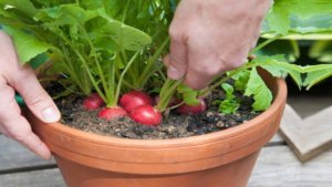 Tehetünk retket, céklát is cserépbe. A retket, ládába is tehetjük, de a céklának nagyobb a gyökere, ezért azt célszerű mélyebb cserépbe tenni. A retket, akár abba a cserépbe is tehetjük, amibe a paradicsomot. A hónapos retek, megnő mire a paradicsom akkora lesz, hogy nagy árnyékot vessen rá. Ezeket kb. 2 cm mélyre vetjük, nedvesen tartjuk a földet. A céklát, ha már szép levelei vannak, át is palántázhatjuk, külön cserepekbe, akkor nagyobbakra nőnek.